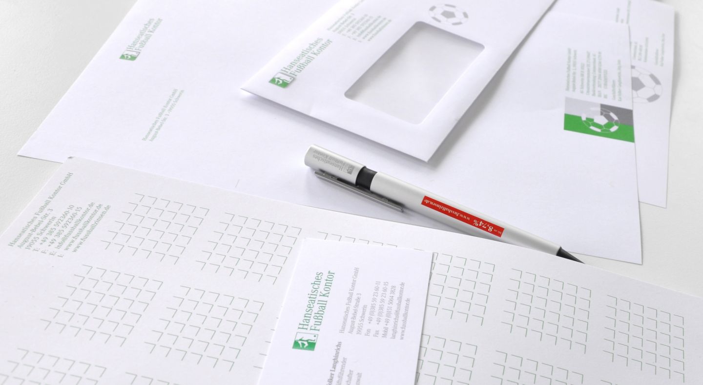 Wie kommuniziert man ein hochemotionales Thema wie Fußball neu, wenn es in die Kategorie Geldanlage wechselt? Das Runde muss also in das Eckige. Für das Hanseatische Fussball Kontor haben wir ein effektives und überzeugendes Corporate Design entwickelt, das über alle erforderlichen Medien angewandt werden kann, vom Kugelschreiber bis zur Emissionsbroschüre.